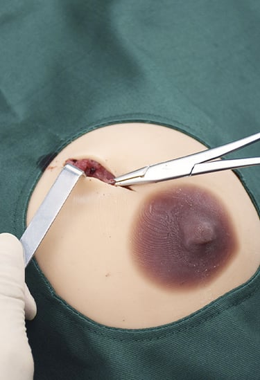 Designed to simulate breast tissue adhesion and lump characteristics, this model enables training in breast palpation, tumor resection, and related surgical skills.