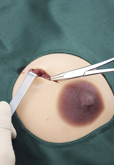 Breast tumor excision, palpation, cosmetic suturing, and reconstruction training.