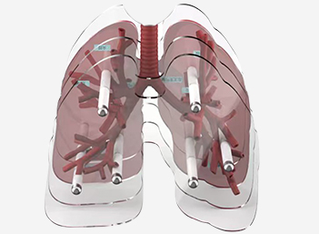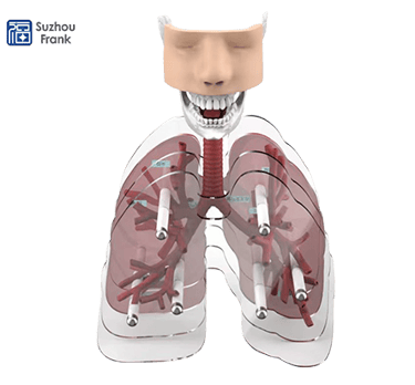 It simulates up to grade 4 bronchial branches, replicating human bronchial tree anatomy realistically.