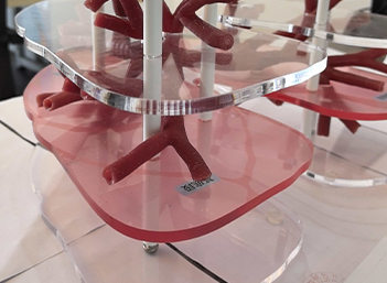 The bronchial intervention training model simulates the branching structure of the human bronchial tree based on 3D modeling of human anatomical data. It can be reversed to a four-level bronchial branch configuration and is compatible with any commercially available real fiberoptic bronchoscope for procedural exploration training, sputum suction, foreign body removal, and other operations. Head A can be inserted into the bronchi via the mouth or nose, while head B can be directly inserted into the main bronchus. The model is reusable and cost-effective.