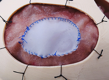 A 3D-reconstructed head model for neurosurgical dural repair training.