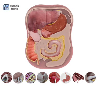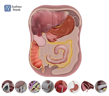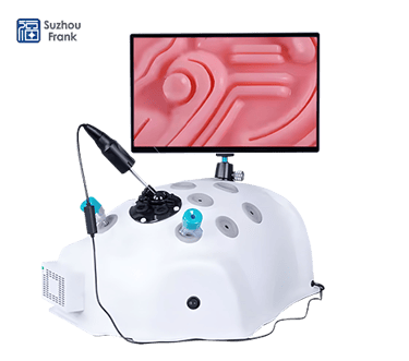 Colonoscopy interventionTraining Model based on real human data to restore the intestinalsystem environment, soft texture, strong sense ofreality, with 6 lesions: polyps, tumors. The material of the intestinal body is close to thereal human body, and the progress of the endoscope can be observed through the lightsource during use.When the product is used, it should be filled with lubricating liquid or glycerin, and it can be washed with water. No consumables can be used repeatedly.