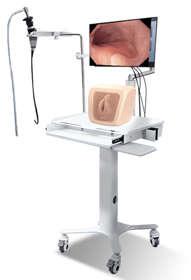 It supports colposcopes, biopsy devices, and other interventional instruments for hysteroscopic procedures.