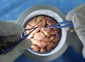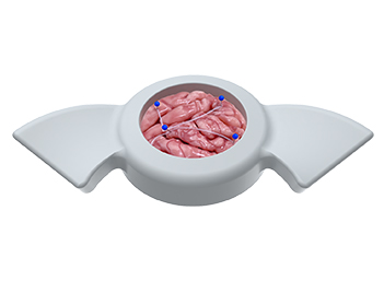 With replaceable vascular consumables, this reusable model enables repeated practice of dura mater and vascular anastomoses (end-to-end, etc.) in neurosurgery.