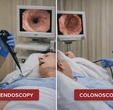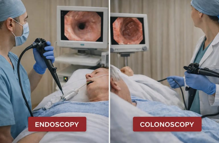 This article focuses on the two most common gastrointestinal procedures: standard endoscopy examining the upper GI tract and colonoscopy examining the lower GI tract. These are the procedures most patients encounter , and they're the ones people typically want to compare.