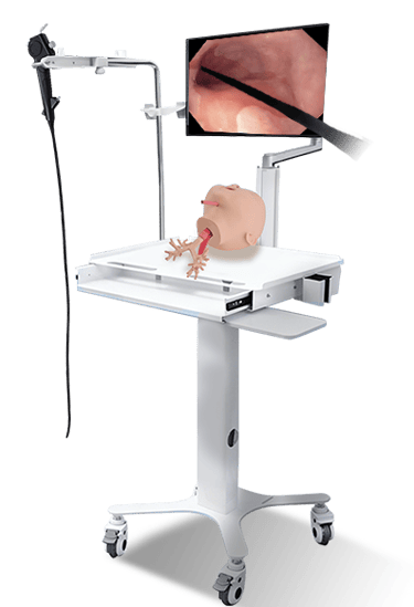 Featuring replaceable foreign body parts, this model supports training in pediatric bronchoscopic foreign body removal, laryngoscopy, and tracheal intubation.