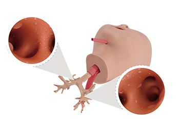 Designed from children's lung CT data and made of high-soft silicone (18A~30A), this model accurately simulates pediatric oral, nasal, and bronchial structures for bronchoscopic training.